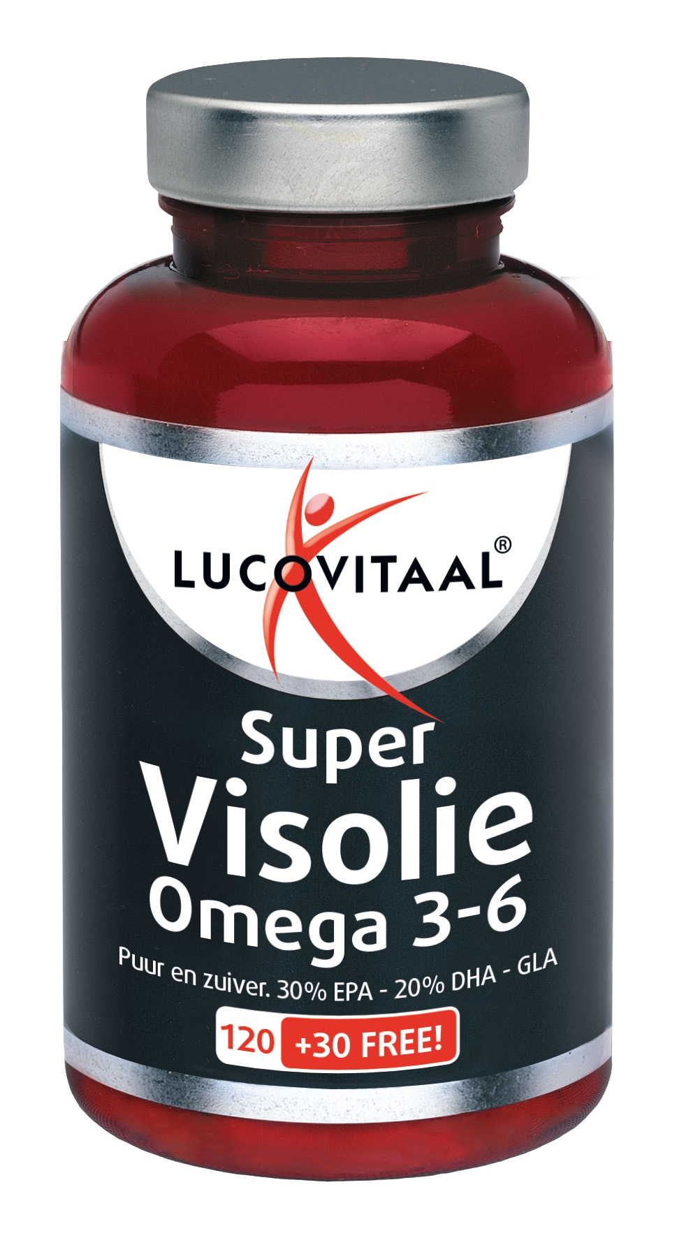 Super Visolie Omega 3 van Lucovitaal bevat een hoge concentratie omega 3-6 en vitamine E. De omega 3 vetzuren EPA en DHA hebben een positieve bijdrage aan de normale werking van het hart. Vitamine E heeft een anti oxidatieve werking: het helpt lichaamscellen te beschermen tegen invloeden van buitenaf. EPA en DHA hebben een positieve bijdrage aan de normale werking van het hart - dragen bij tot de instandhouding van de normale bloeddruk - draagt bij tot de instandhouding van de normale hersenfunctie -draagt bij tot de instandhouding van een normaal gezichtsvermogen - Inname van DHA door de moeder draagt bij aan de normale ontwikkeling van de hersenen en de ogen van de foetus en bij borstgevoede zuigelingen.
